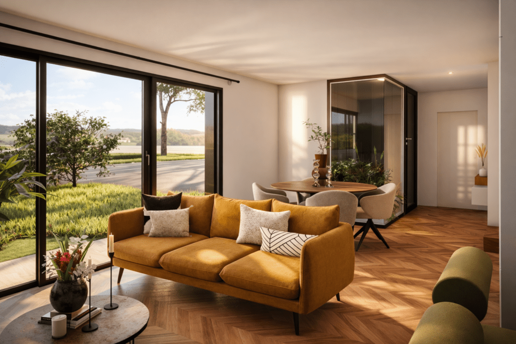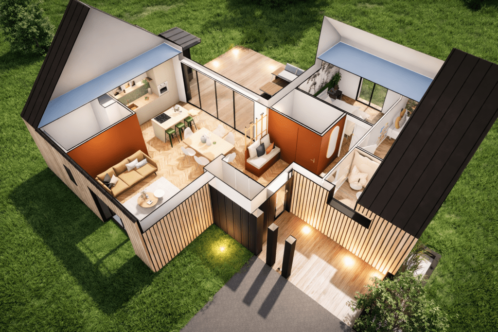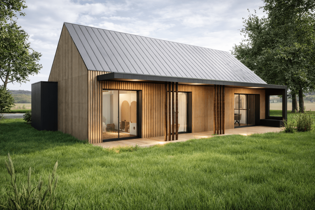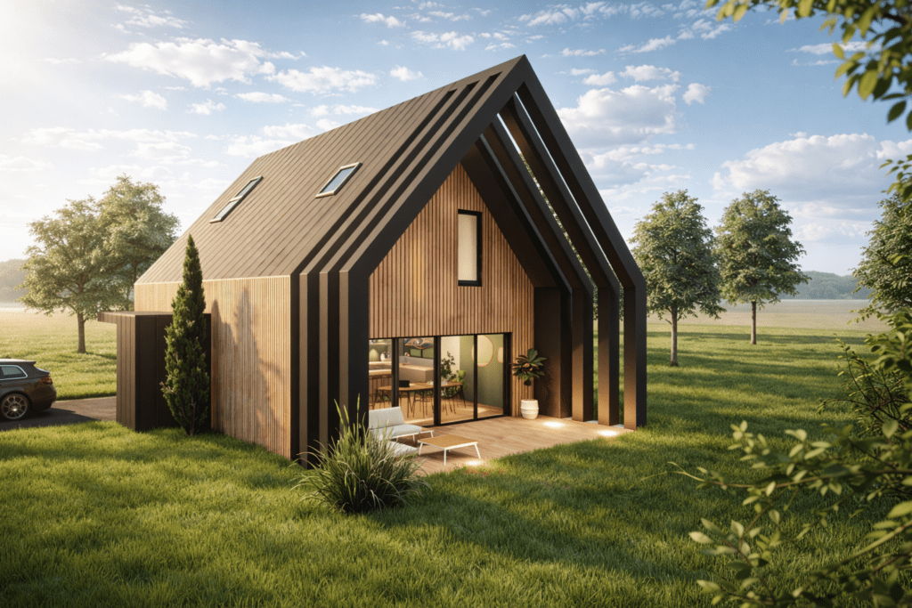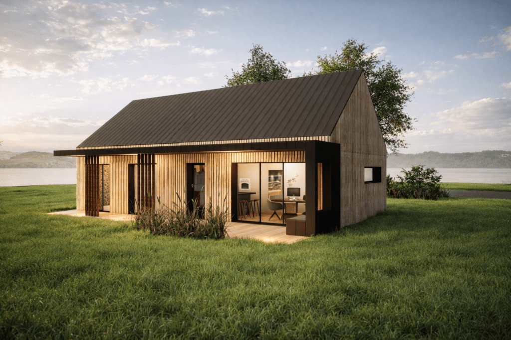 La liny est une maison en bois pensée comme un refuge intelligent, durable et profondément Compacte et de plain-pied, elle réinvente l’essentiel sans jamais renoncer au confort.